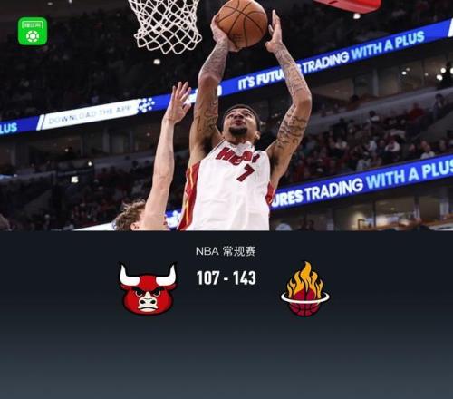 北京时间11月22日,NBA常规赛季中NBA杯小组赛芝加哥公牛主场迎战迈阿密热火。本场公牛科比怀特缺阵,首节双方紧咬比分热火领先4分,但次节热火轰出34-20拉开分差,半场热火70-52公牛,下半场公牛进攻依旧低迷,早早收兵换下主力,热火持续拉大分差,最终热火143-107狂胜公牛。